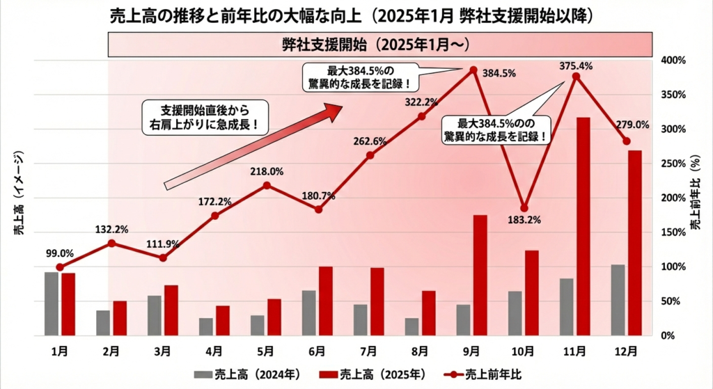 支援開始にあたり、現状の数値データを徹底的に分析し、課題の特定と優先順位の設計を行いました。戦略設計から運用まで実行した結果、以下成果を創出できました。