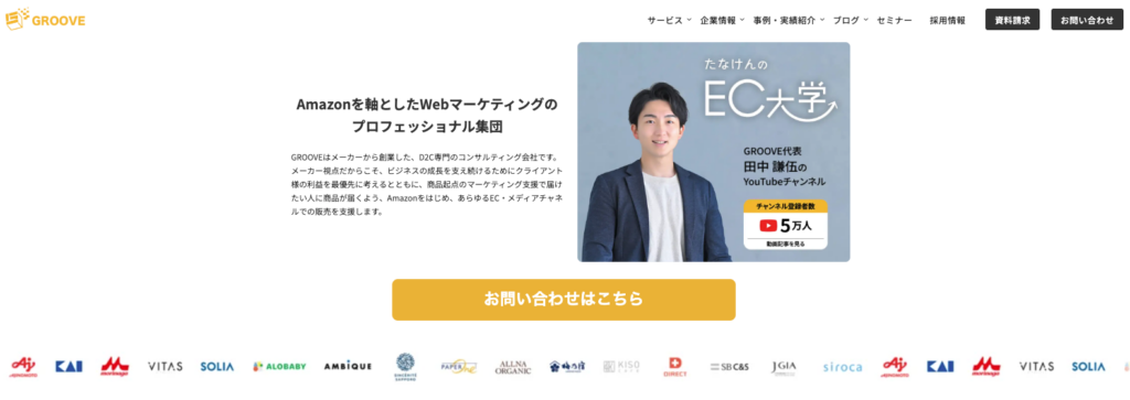 株式会社GROOVEは、メーカー発のD2C専門コンサル会社として、Amazon運用代行とあわせて「戦略〜運用〜社内研修」まで一貫支援しており、将来的な内製化も見据えて相談したい事業者に適したパートナーです。