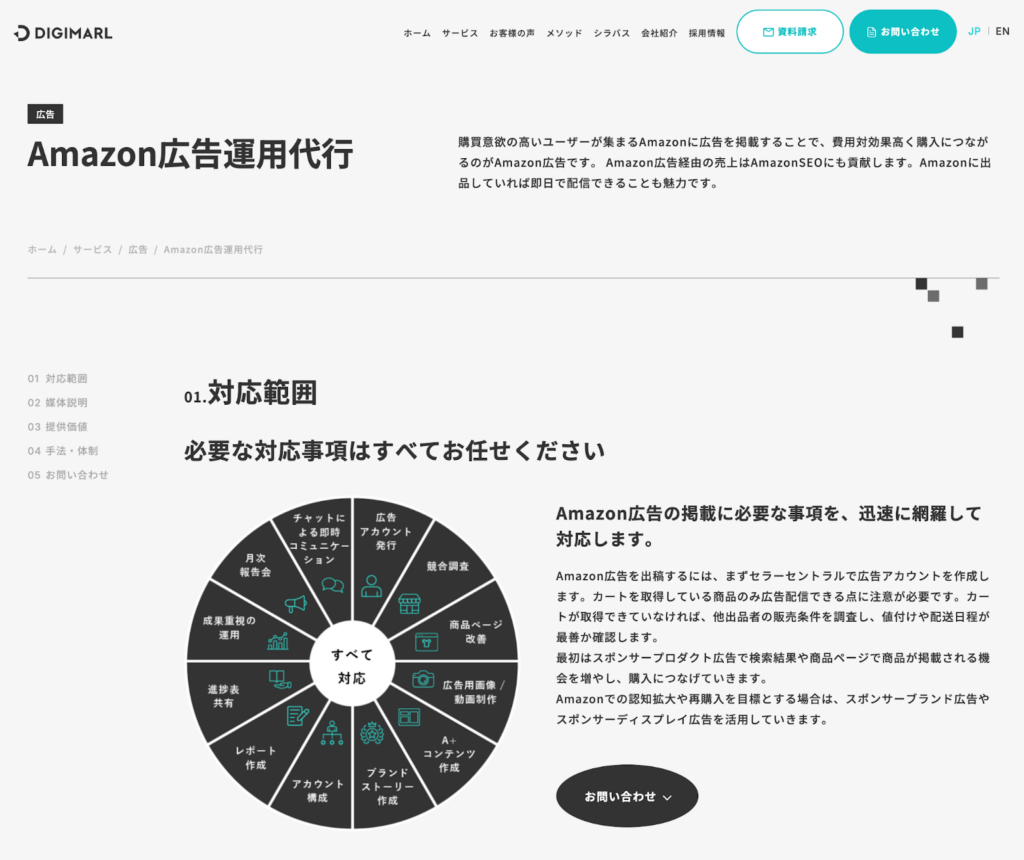 株式会社D2Cは、デジタルマーケティング全般を支援しており、Amazon広告を含む大規模プロモーションやマルチチャネル施策を検討する企業向きの代理店です。