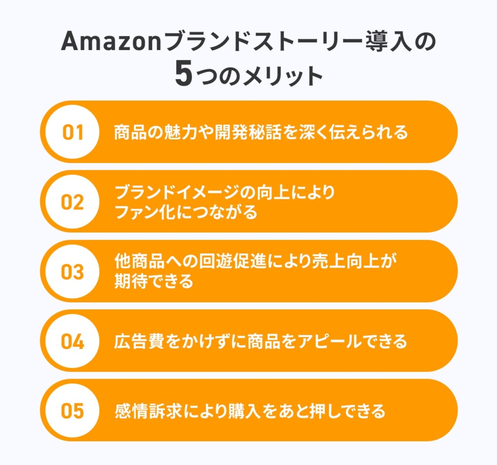 Amazonブランドストーリーを導入することで、売上向上につながる多くのメリットが得られます。具体的には、以下の5つの大きな利点があります。
