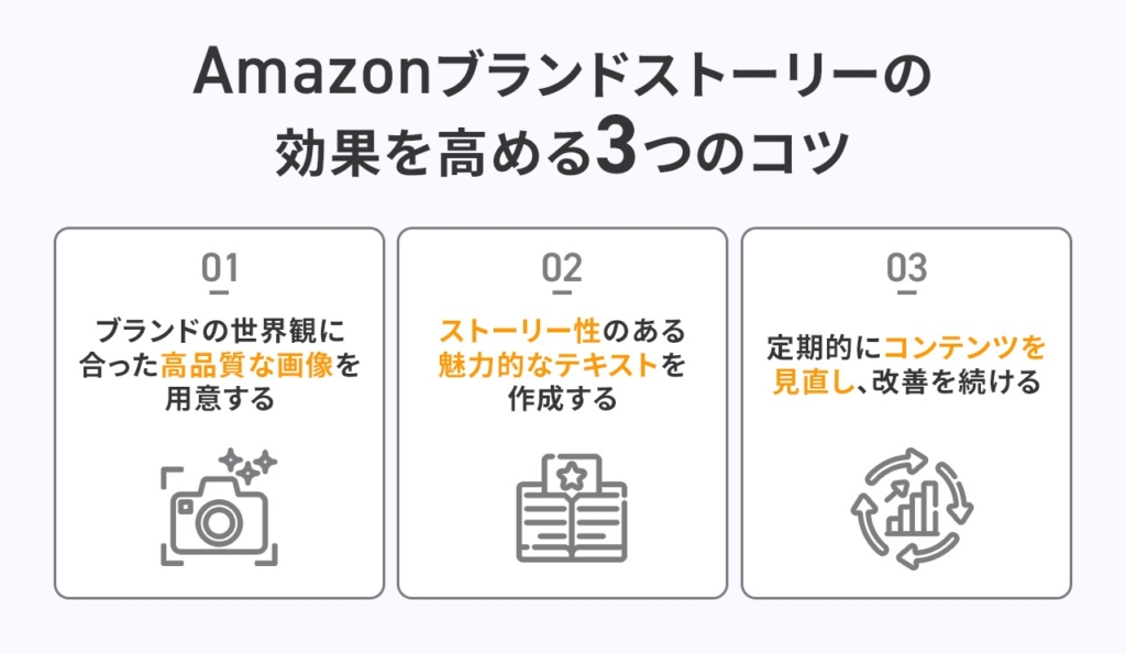 Amazonブランドストーリーは、一度作ったら終わりではありません。公開したあとも、定期的にお客様の反応などを分析し、より良い内容に改善し続けることが、成果を出すための重要なコツです。