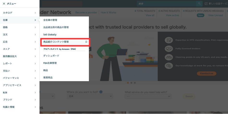 - STEP1. セラーセントラルで「商品紹介(Aプラス)コンテンツの管理」を開く