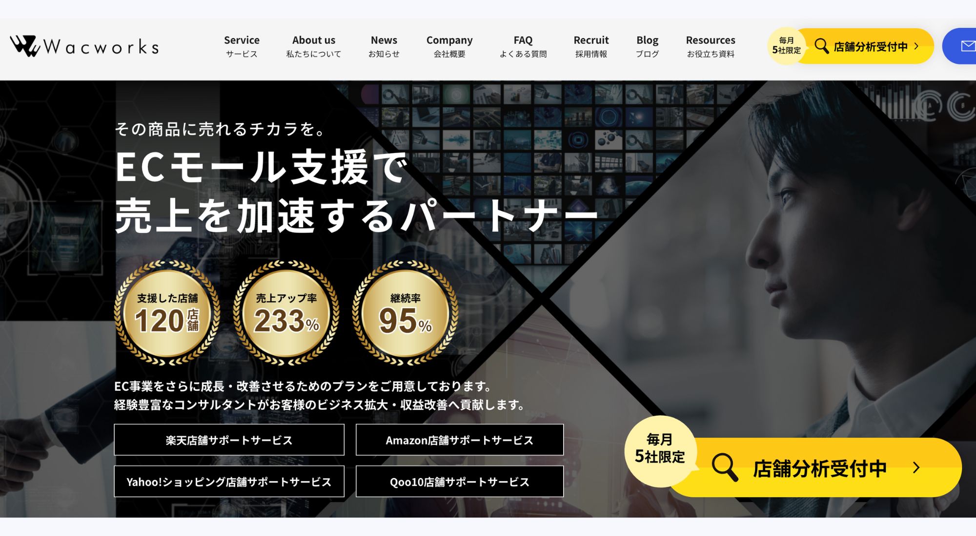 楽天市場やAmazonなど複数モールにおける売上拡大・運用最適化を総合的に支援している。