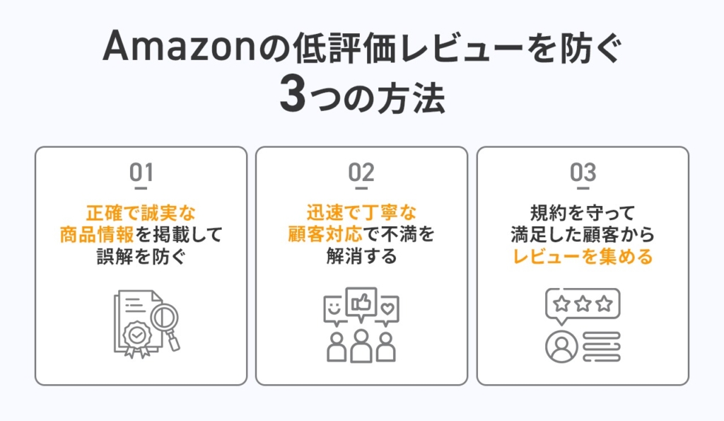 ここでは、Amazonの低評価レビューを防ぐ3つの方法を紹介します。