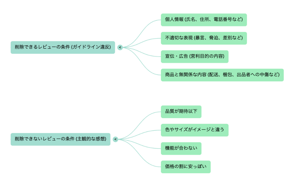 具体的には、以下のような内容を含むレビューが削除の対象となります。