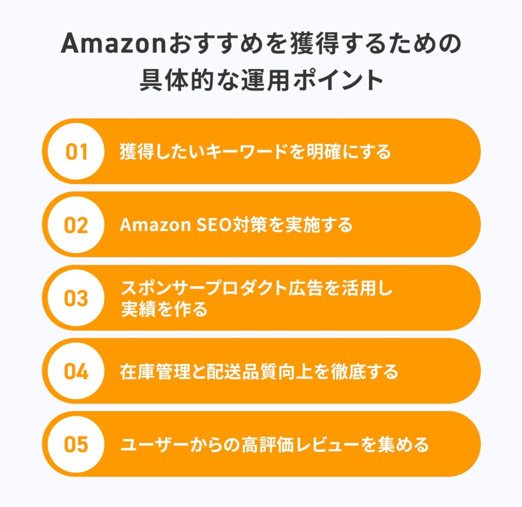 Amazonおすすめを獲得するための具体的な運用ポイントは以下の5つです。
