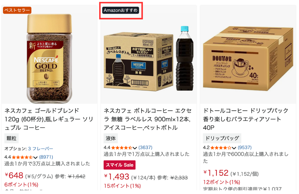 商品がよく売れていてベストセラーバッジが表示されている場合、検索結果や商品ページではAmazonおすすめが目立たない、または表示されないように見えることがあります。