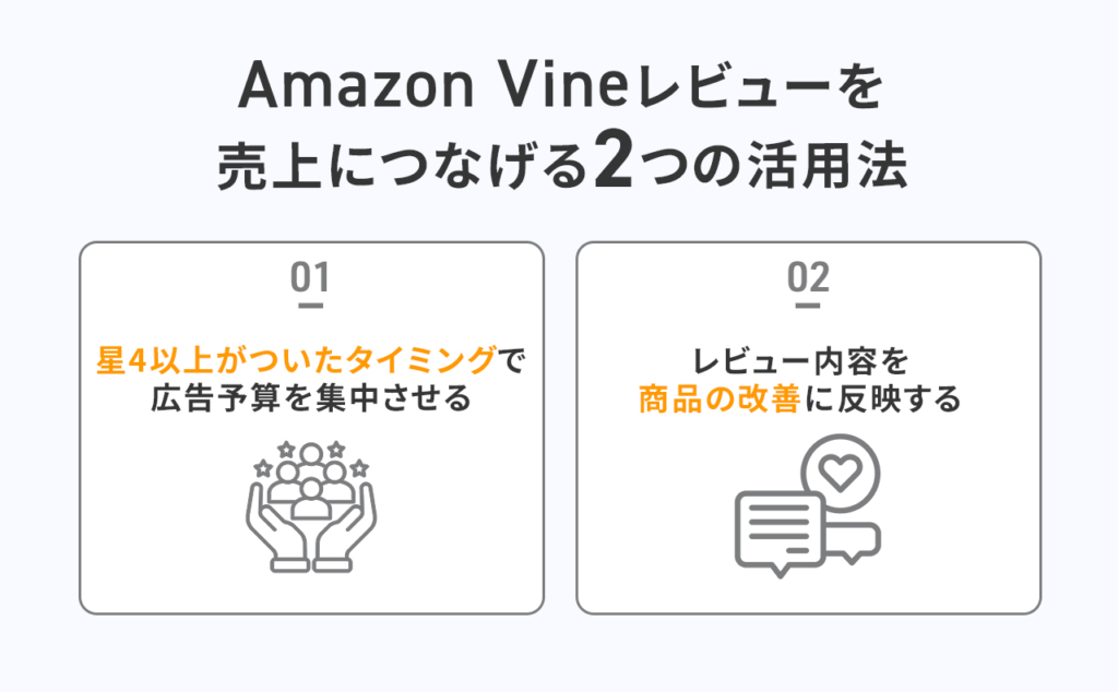 Amazon Vineで集まったレビューを売上につなげるための活用法を2つ紹介します。