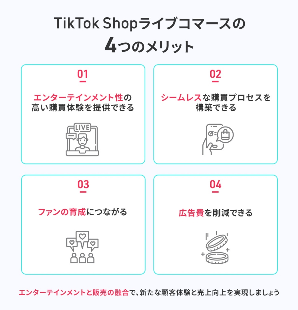 TikTok Shopのライブコマースを活用するメリットは以下の4つです。