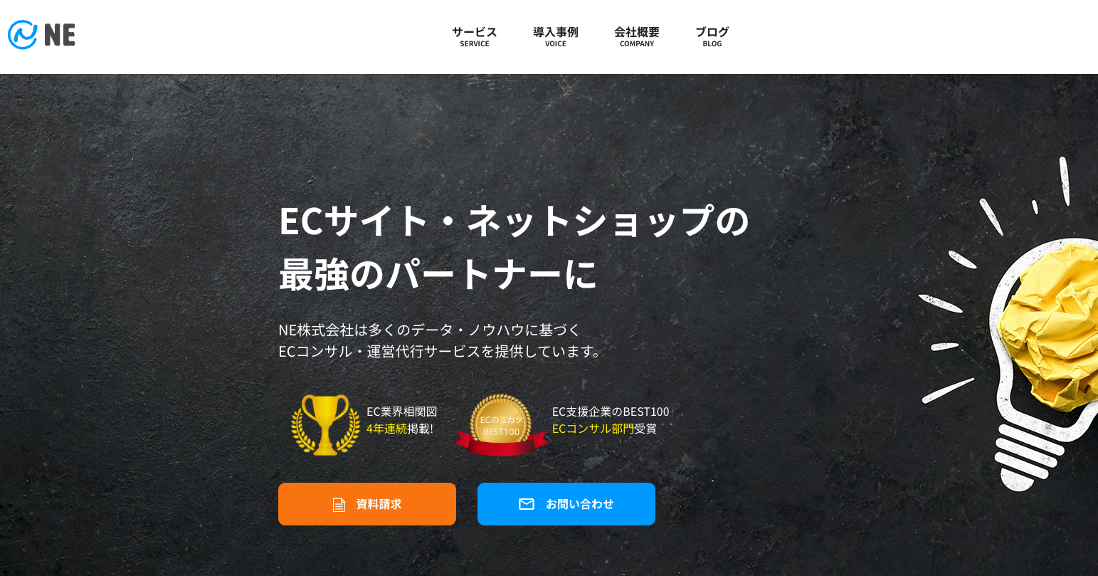 「NE株式会社」は、楽天・Yahoo!ショッピング・Amazon・自社ECまでを横断した総合EC支援を提供します。