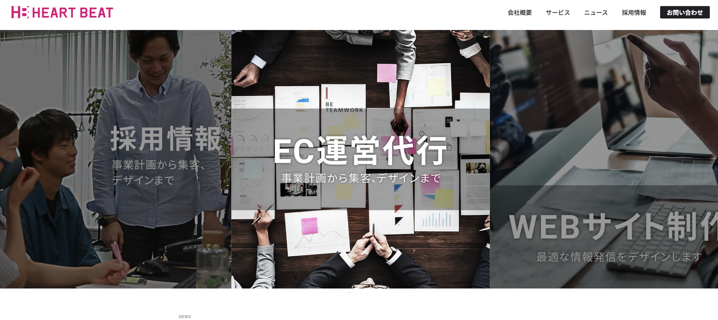 「株式会社ハートビート」は、EC運営のプロフェッショナルを抱える運営代行業者です。ECの運営業務を「店長業務」「フロントオフィス」「バックオフィス」「倉庫業務」と4つに分け、すべての業務を任せることができます。また、業務の一部だけ対応するプランも用意されています。