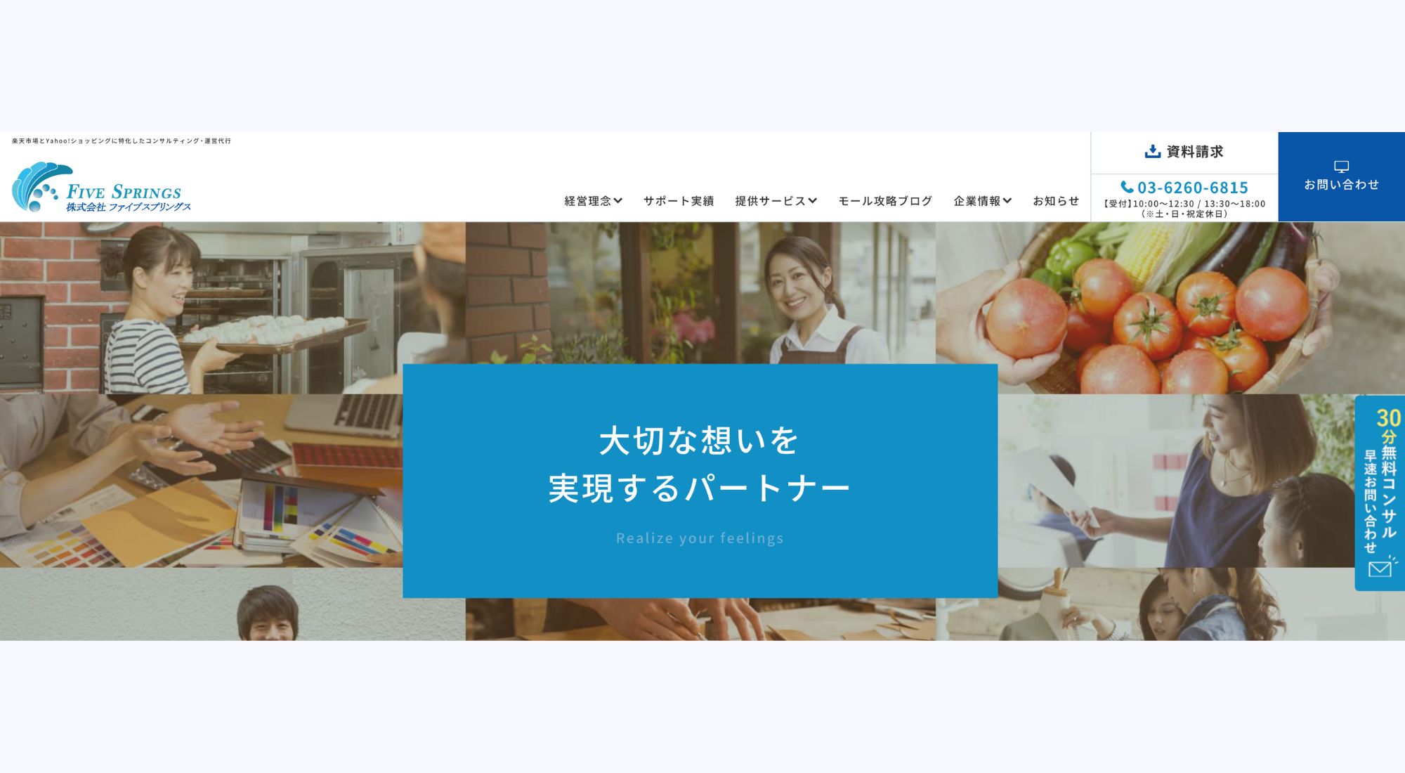 ![]() | 株式会社ファイブスプリングス | 月額70万円 | ・独自ツールで細分分析 ・Yahoo!コマースパートナー認定 | 詳細を見る |
