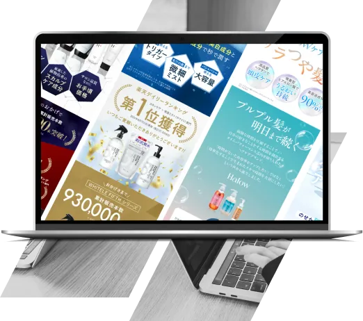 楽天の検索アルゴリズムと、楽天ユーザー特有の購買行動を熟知した私たちが、「検索に強く、回遊性が高く、売上が上がる」三拍子揃った商品ページを制作します。イベント時には、売上を最大化するための特設ページ(セールLP)の制作も可能です。