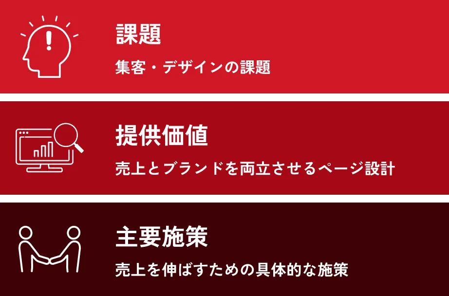 楽天市場で実証済みの「信頼性を高める見せ方」やAmazonでCVRを上げた「ベネフィット訴求の切り口」を、貴社のLPに合わせて実装・反映します。