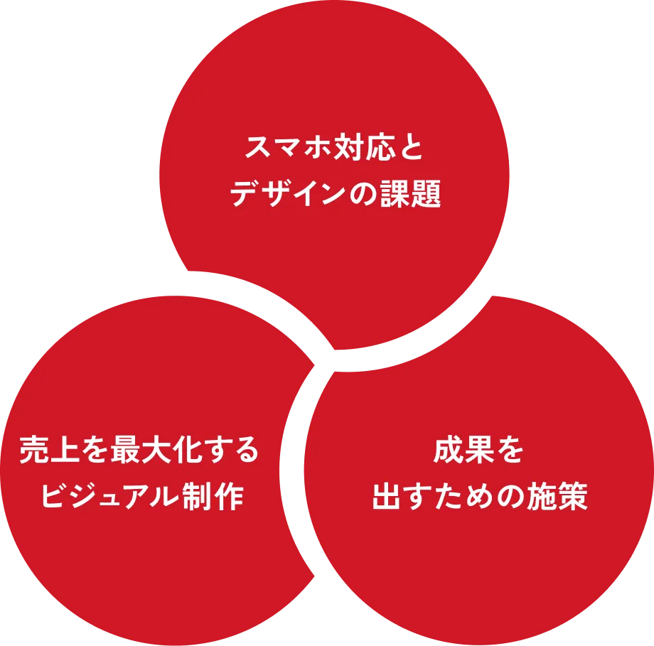 - PCで作ったページを流用しており、スマホで見づらく回遊性も低い
