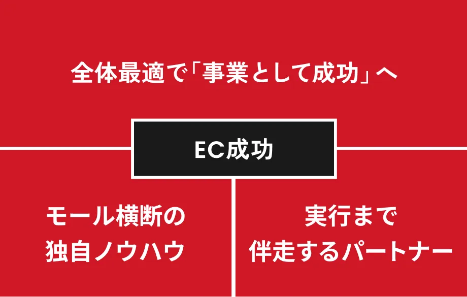 出店準備段階からストア構築・カテゴリ設定・広告運用まで、トータルでサポートいたします。
