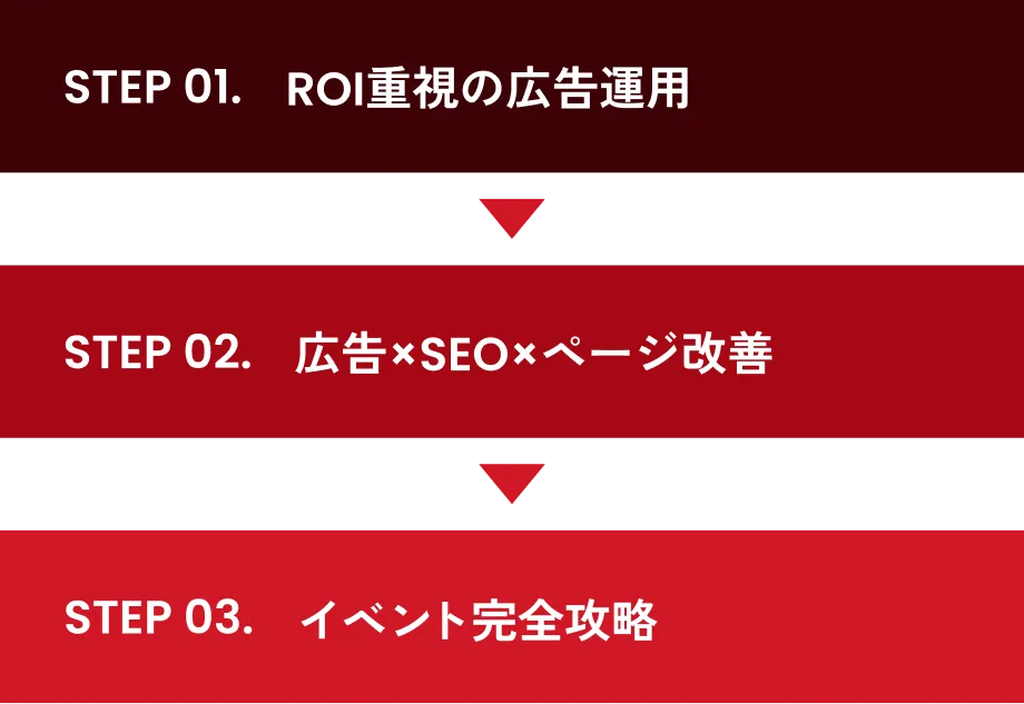 広告の成果は、広告単体では決まりません。私たちは、広告運用と同時にSEO対策やページ改善を常に見直し、連動させます。広告で集めたアクセスを、最適化されたページで確実に購入につなげ、さらにその販売実績をSEOにも好影響させる。この「全体最適」の視点があるからこそ、お客様の広告投資を最大化できるのです。