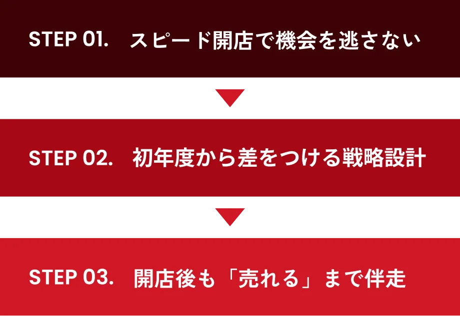 初年度から売上の初速を上げ、軌道に乗せるための店舗構築を支援します。